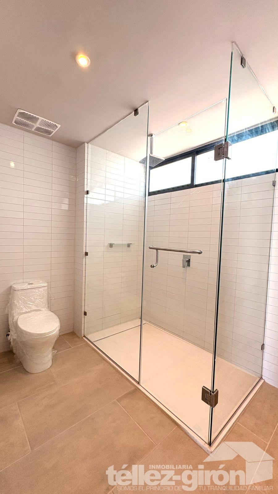 •* Piso y zoclo Interceramic, vanities tipo nórdico en baños y balconaje con cristal templado y puertas abatibles.